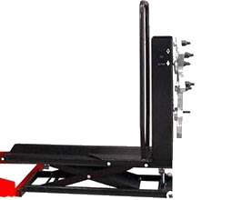Este elevador facilita la sujeción de las pesadas ruedas de los camiones y ofrece un amplio espacio de almacenamiento para conos, estrellas de centrado y tuercas de mariposa.