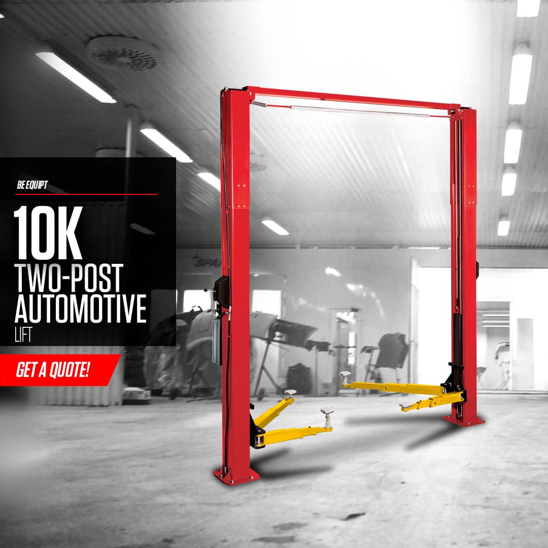 Built to get the job done, the John Bean 10k Two-Post Lift easily handles loads up to 10,000 pounds. For ultimate flexibility, symmetric or asymmetric lifting is possible, and installation of the power unit can be on either side, while the installed height is adjustable by up to 10 inches.