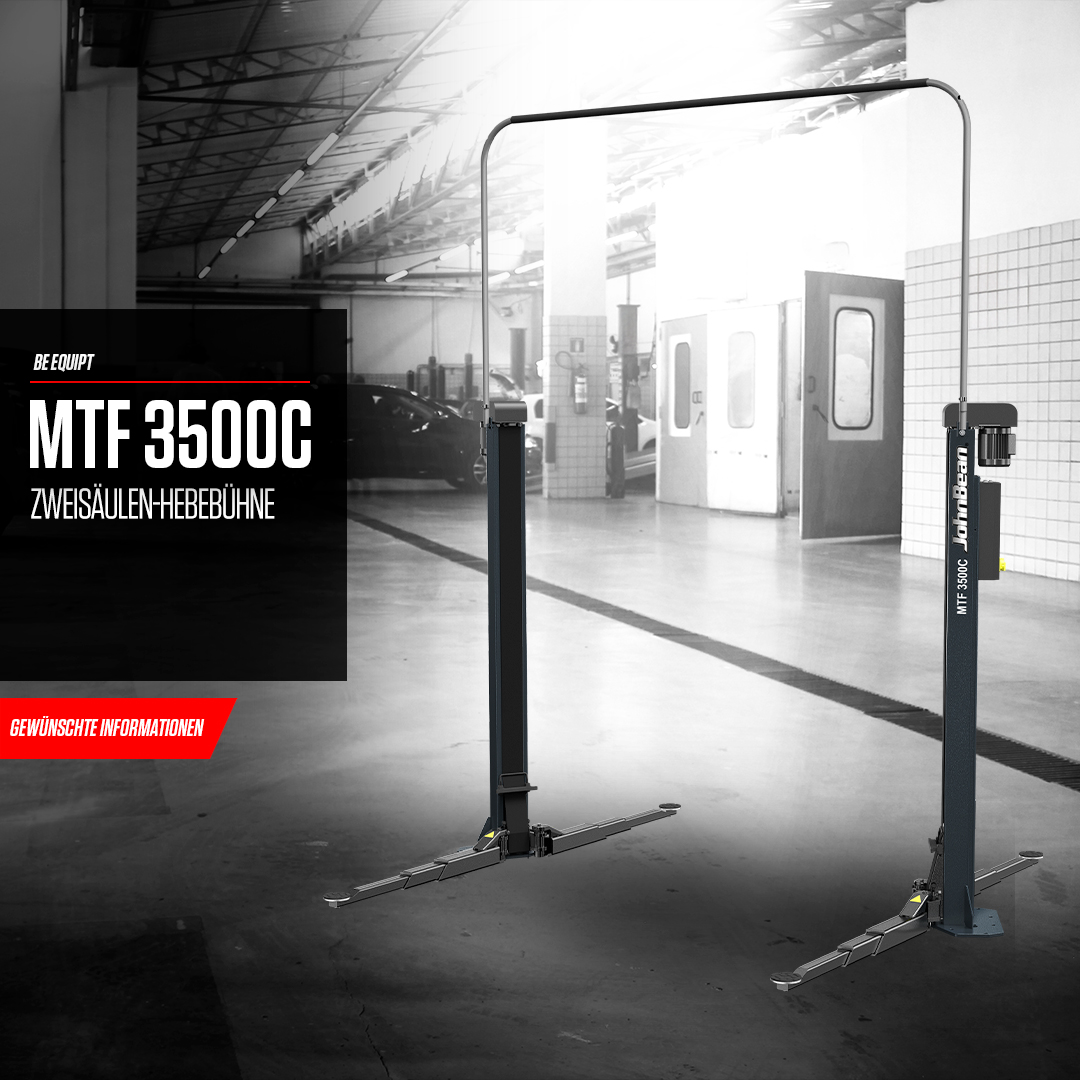 Der MTF 3500C wurde für präzisionsgetriebene Werkstätten entwickelt und definiert elektromechanisches Heben mit außergewöhnlicher Zuverlässigkeit und präziser Steuerung neu. Diese fortschrittliche Lösung von John Bean® wurde mit einer leistungsstarken Hubkapazität von 3.500 kg entwickelt und wurde speziell für die heutigen Serviceschächte entwickelt. Sie bietet die Stärke und Vielseitigkeit, um alles, von kompakten SMART-Fahrzeugen bis hin zu langen Transportern und Elektrofahrzeugen (EVs), souverän zu bewältigen.