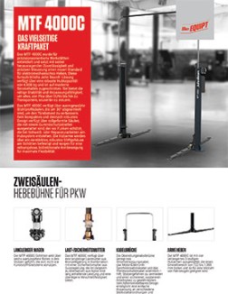 Der MTF 4000C ist mit vier verlängerten 3-stufigen Hubarmen ausgestattet, die einen Einstellbereich von 722 bis 1.300 mm bieten und so für eine Vielzahl von Fahrzeugen geeignet sind.