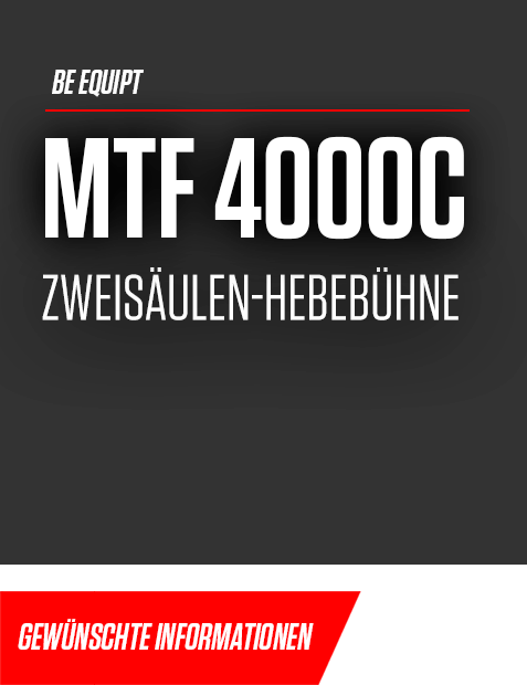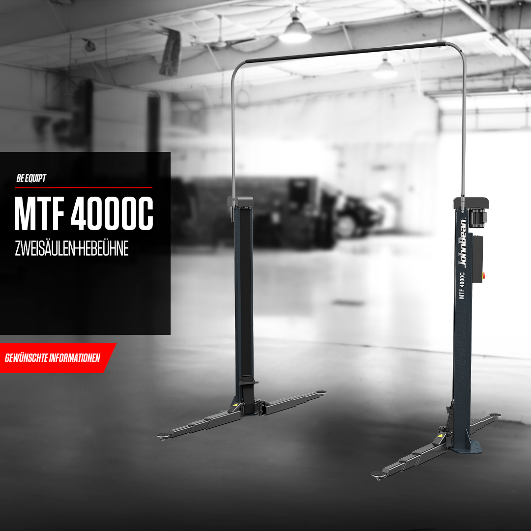 Das MTF 4000C wurde für präzisionsorientierte Werkstätten entwickelt und setzt mit seiner herausragenden Zuverlässigkeit und präzisen Steuerung einen neuen Standard für elektromechanisches Heben. Diese fortschrittliche John Bean® -Lösung verfügt über eine robuste Hubkapazität von 4.000 kg und ist auf moderne Servicehallen zugeschnitten. Sie bietet die nötige Stabilität und Anpassungsfähigkeit, um alles, von Pkw über SUVs bis hin zu Transportern, souverän zu steuern.