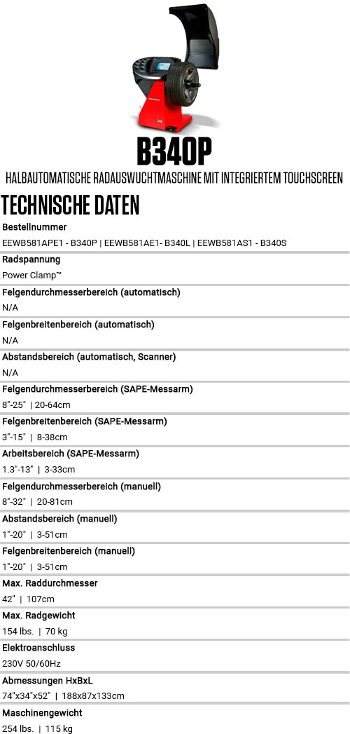 HALBAUTOMATISCHE RADAUSWUCHTMASCHINE MIT TOUCHSCREEN