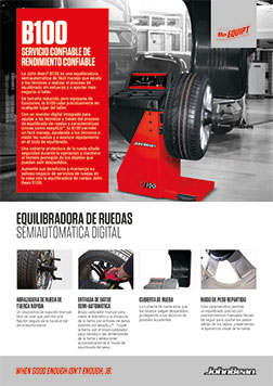 La John Bean® B100 es una equilibradora semiautomática de fácil manejo que ayuda a los técnicos a realizar el proceso de equilibrado sin esfuerzo y a aportar más negocio al taller.