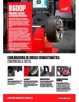 La equilibradora de ruedas B600P de John Bean es ideal para los talleres que buscan un equipo fácil de manejar y que ofrezca altos niveles de productividad, manteniendo los talleres a pleno rendimiento.
