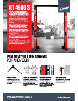 Le pont élévateur à deux montants John Bean® JLT 4500 offre polyvalence et commodité pour l’entretien et les réparations de véhicules pesant jusqu’à 4,5Tonnes . Ce pont élévateur à deux colonnes est équipé de la technologie Versymmetric® qui permet de combiner les réglages symétriques et asymétriques du pont élévateur en un seul équipement, ce qui apporte de la flexibilité à n’importe quelle aire de service et maximise l’efficacité et l’espace de l’atelier.